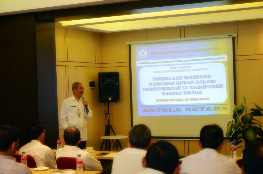 BANJARBARU – Salah satu cara menyebarluaskan suatu informasi adalah dengan cara sosialisasi.  Kegiatan inilah yang dilaksanakan oleh Balai KSDA Kalimantan Selatan dalam mensosialisasikan hasil identifikasi potensi calon Kawasan Ekosistem Esensial (KEE) yang ada di Kabupaten Barito Kuala.  Kegiatan ini dilaksanakan pada hari Rabu, 18 Juli 2018 bertempat di Fave Hotel Banjarbaru.  Kegiatan sosialisasi ini dihadiri oleh berbagai pihak, Pemerintah Pusat, Pemerintah Daerah (Provinsi dan Kabupaten) beserta SKPD, dan pihak Akademisi dan Lembaga Swadaya Masyarakat.