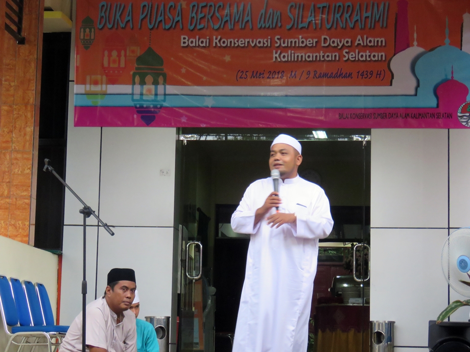 Dalam sambutannya, Kepala Balai KSDA Kalsel mengucapkan terimakasih atas kehadiran para undangan serta peran serta panitia buka bersama yang telah menyiapkan acara ini sehingga berjalan dengan lancar. “Tujuan dari kegiatan ini adalah untuk menjalin silaturahmi, mempererat persaudaraan dalam rangka meningkatkan keimanan dan ketakwaan kepada Allah SWT”, tutur Mahrus.
