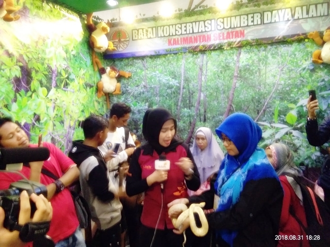 BANJARBARU − Jum’at, 31 Agustus 2018, hari pertama Pameran Kalsel Expo 2018 stand BKSDA Kalsel dipenuhi pengunjung. Gelaran pameran tiap tahun yang diselenggarakan di Lapangan Moerdjani Banjarbaru ini merupakan rangkaian peringatan Hari Jadi Prov. Kalsel yang ke-68.