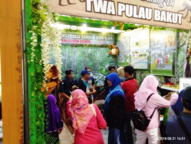 Tak pernah kentinggalan, BKSDA Kalsel selalu turut andil dalam perhelatan tahunan ini. Sedikit berbeda dari tahun-tahun sebelumnya, dengan mengusung tema “TWA Pulau Bakut sebagai Role Model Pengembangan Wisata Alam Berbasis Masyarakat dan Sanctuary Bekantan”, panitia berusaha mengajak pengunjung menjelajah TWA Pulau Bakut sebagai salah satu habitat bekantan dengan melewati titian dan akan menemukan berbagai jenis satwa disana. Dengan menggandeng Komunitas Alka Borneo, stand semakin semarak dengan aneka reptile dan beberapa musang.
