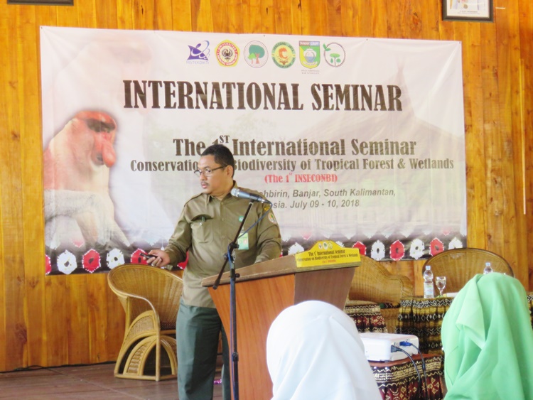 KIRAM – Dirjen KSDAE menyampaikan materi tentang manajemen konservasi di Indonesia pada “The 1st International Seminar – Conservation on Biodiversity of Tropical Forest & Wetlands” di Kiram hari ini (09/07/2018). Pada kesempatan tersebut Dirjen KSDAE Ir. Wiratno, M.Sc menugaskan kepada Kepala Balai KSDA Kalimantan Selatan Dr. Mahrus Aryadi, M.Sc untuk menyampaikan materinya yang meliputi tentang tipe dari Kawasan Suaka Alam (KSA) dan Kawasan Pelestarian Alam (KPA) yang terdiri dari cagar alam, suaka margasatwa, taman nasional, taman wisata alam, tahura, dan taman buru.